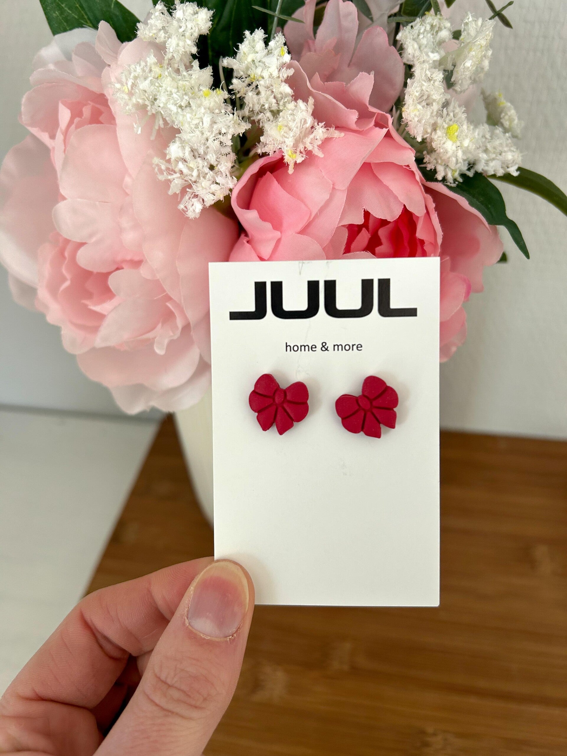 Strikjes studs - diep rood